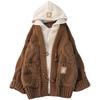 Damski sweter kardigan z kapturem i warkoczowym splotem - Średniej długości, Luźny krój, Jesień/Zima 2024