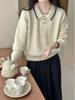 Susan Sweter damski z klapami w stylu koreańskim z długim rękawem, luźny dzianinowy - Jesienny wszechstronny top typu pulower