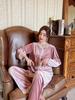Złoty Aksamit Koronka Długi Rękaw Zestaw Piżamy - Damska Seksowna i Oddychająca Jesienna Odzież Domowa