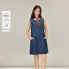 INMAN French Elegant Round Neck Sleeveless Denim Dress