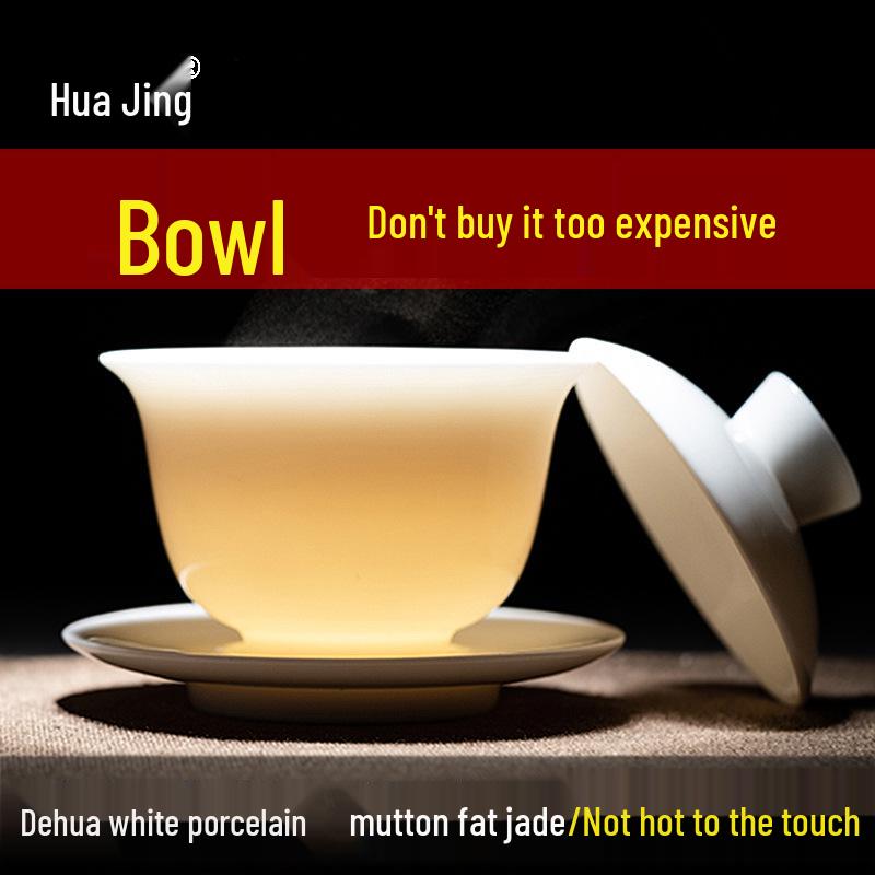 Dehua White Porcelain Gaiwan: Thin Body Sancai Tea Bowl for Kung Fu Tea, Large Ceramic Cup for Home Brewing