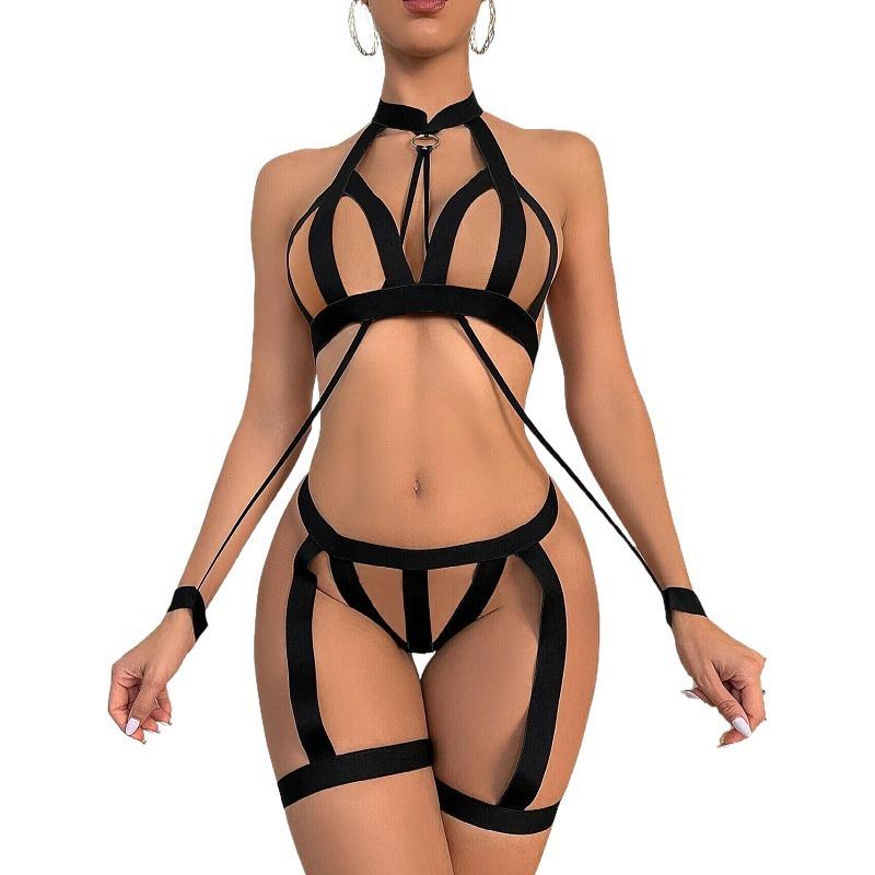 Sexy underwear women's new hollow webbing sexy three-point hand-tied sexy underwear