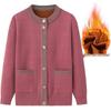 Damski kardigan dzianinowy z pluszową podszewką - Ciepły płaszcz jesienny dla kobiet w średnim i starszym wieku