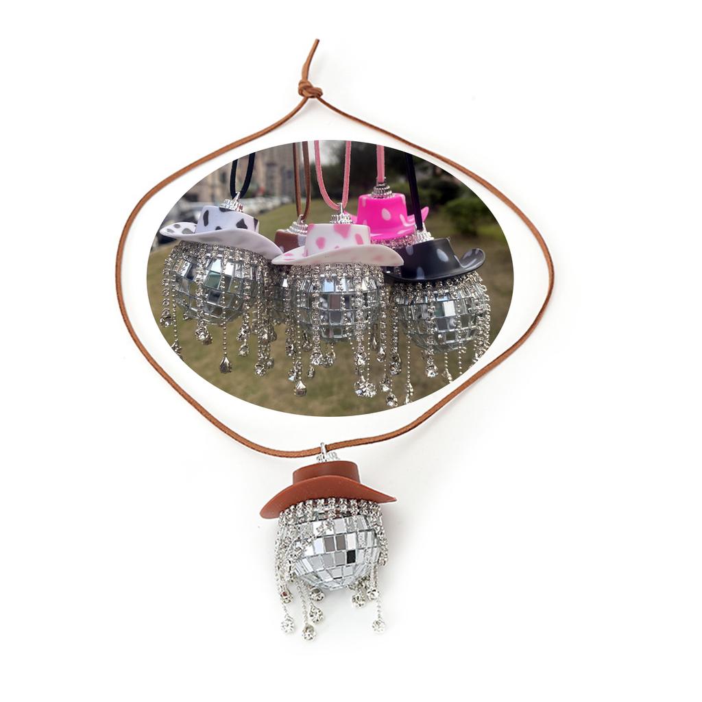 Cowboy Hat Discos Ball Pendant Car Charm Rear View Mirror Hangable Ornaments for Wedding New Year Party Background Decor