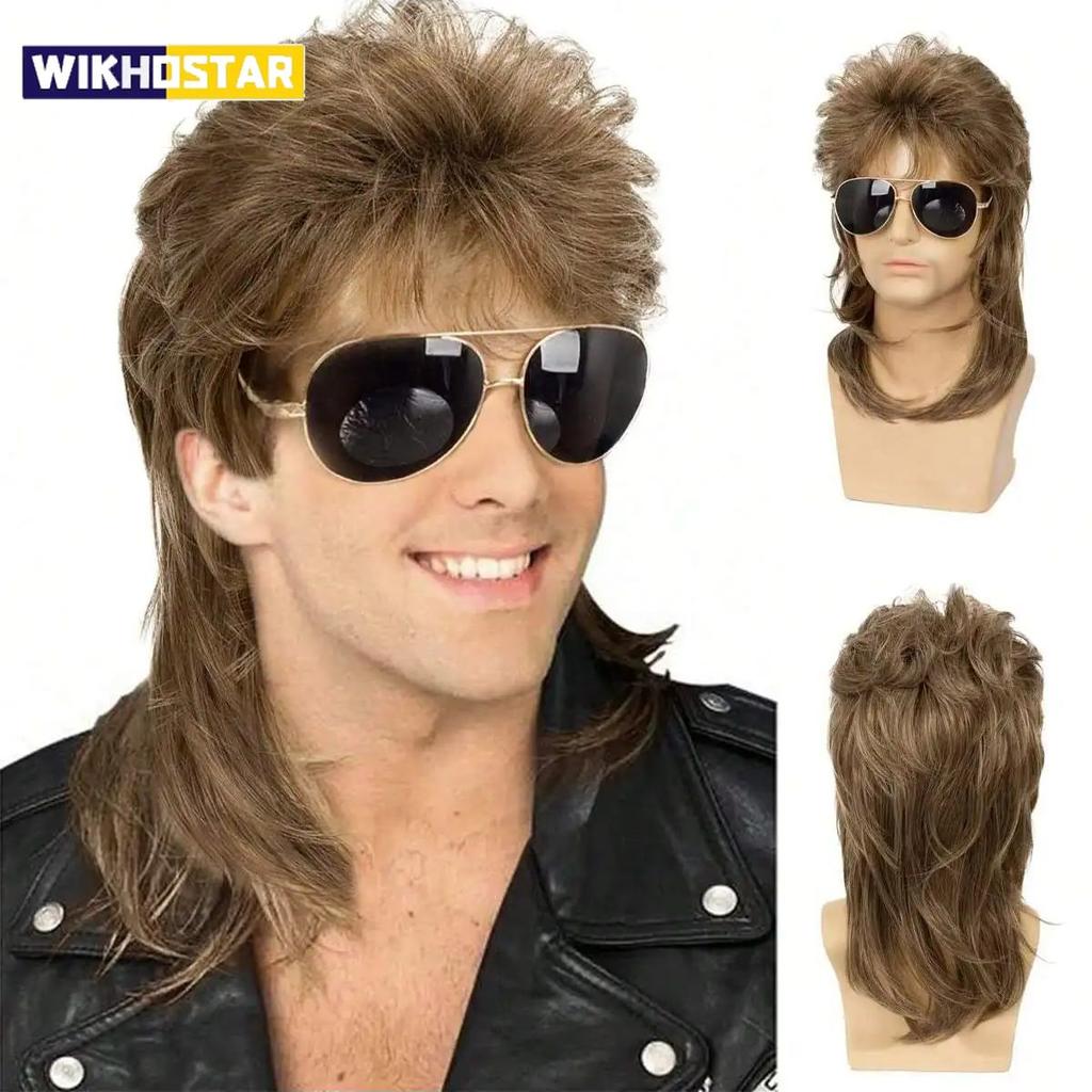 Peruki Mullet dla Mężczyzn Syntetyczne Lata 70. 80. Kostiumy Męskie Czarne Dodatek na Fancy Party Cosplay Peruka do Włosów