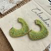 Elegant Hoop Earrings: Handmade European & American Fashion, Versatile Fall/Winter C-Shaped Studs with Cotton Thread Weaving