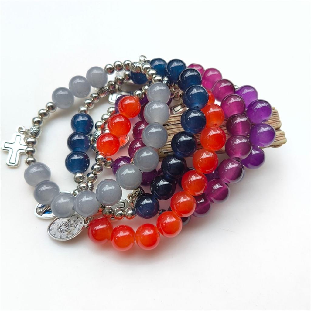 Elegant Crystal Beaded Bracelets Cross Bracelets Stretch Bracelets Rosarys Cross Pendants Bracelets for Daily Wear