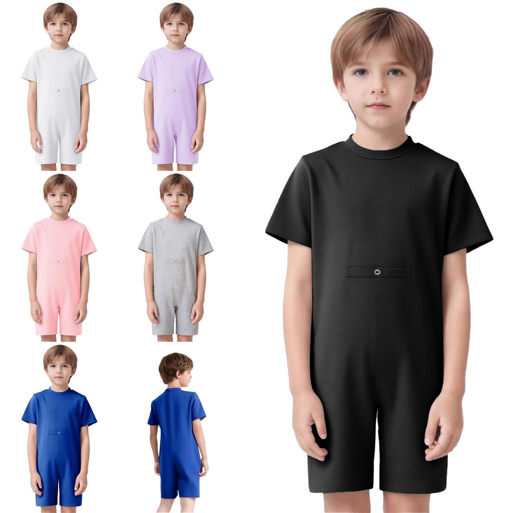 Unisex Odzież dla Dzieci ze Specjalnymi Potrzebami Okrągły Dekolt Krótki Rękaw Niewidoczny Zamek z Tyłu Jednolity Kolor Kombinezon Adaptacyjny