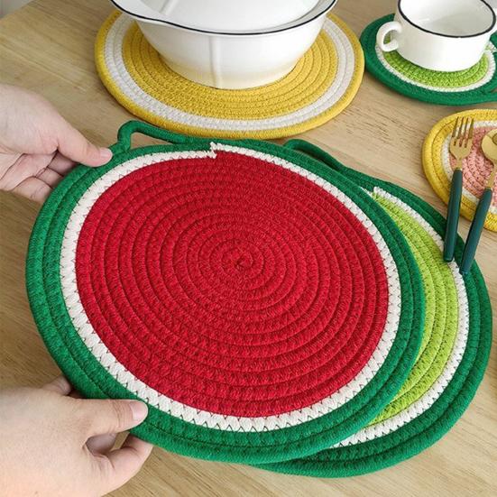 Dzięki dobremu efektowi izolacji cieplnej, nasza podkładka może skutecznie chronić Twój stół i zastawę stołową.. Wygląd to okrągły wzór owocowy z plecionymi liniami, który wygląda wykwintnie i pięknie.
