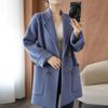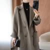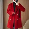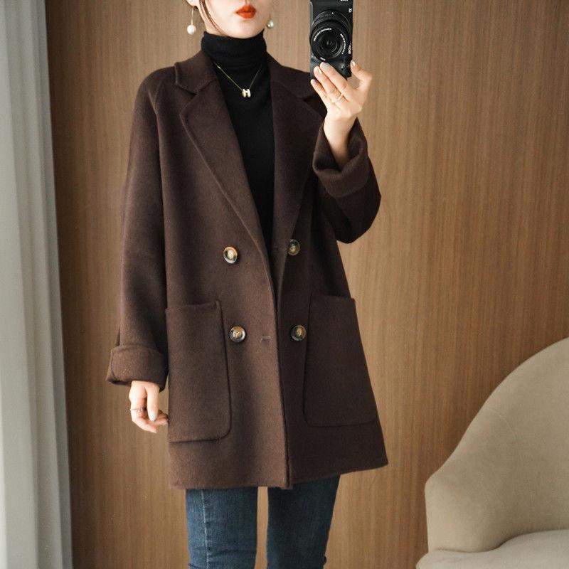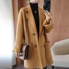 Luksusowy damski dwustronny wełniany płaszcz średniej długości z chenille - Duży rozmiar