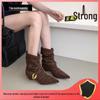 Damskie botki do kostki na niskim obcasie w stylu retro z zamszu na rok 2025: Szpiczasty, Marszczony, Wiązany Warstwowy, Wszechstronny Fason