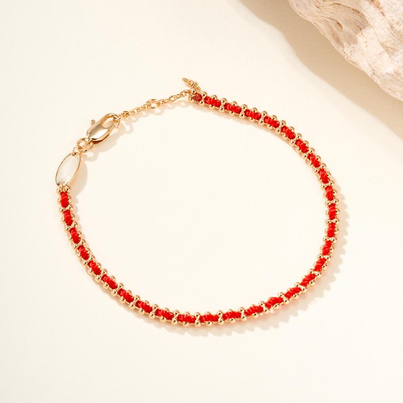 Redline French Red String Bracelet: 8K Rose Gold with Diamonds, Half Rope, Half Chain, Lucky Woven Design for Birth Year
