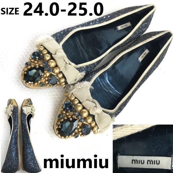Wyprodukowano we Włoszech ★ Miu Miu ★ Błyszczące brokatowe baleriny [rozmiar: 24.0-24.5-25.0] Niebieskie szpilki z ćwiekami ◆ bQ-588