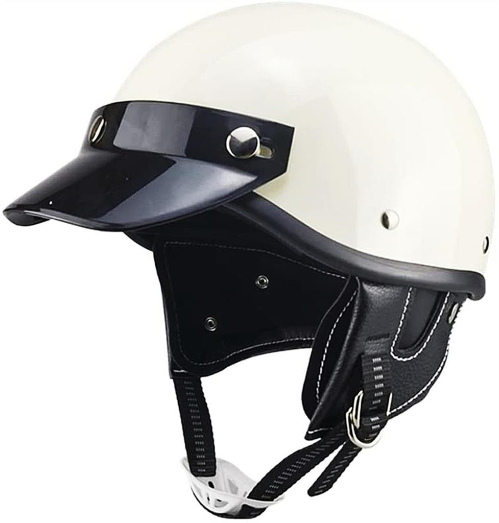 Kask w stylu japońskim z półpokrywą, kask z półczapką, wizjery, kość słoniowa ABS skóra, paski na uszy (23AE,L)