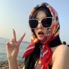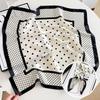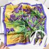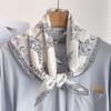 Damski jedwabny szalik w koreańskim stylu: Wszechstronny kwadratowy szalik z kamelią na wiosnę i jesień - do noszenia na szyi, na torebce lub we włosach