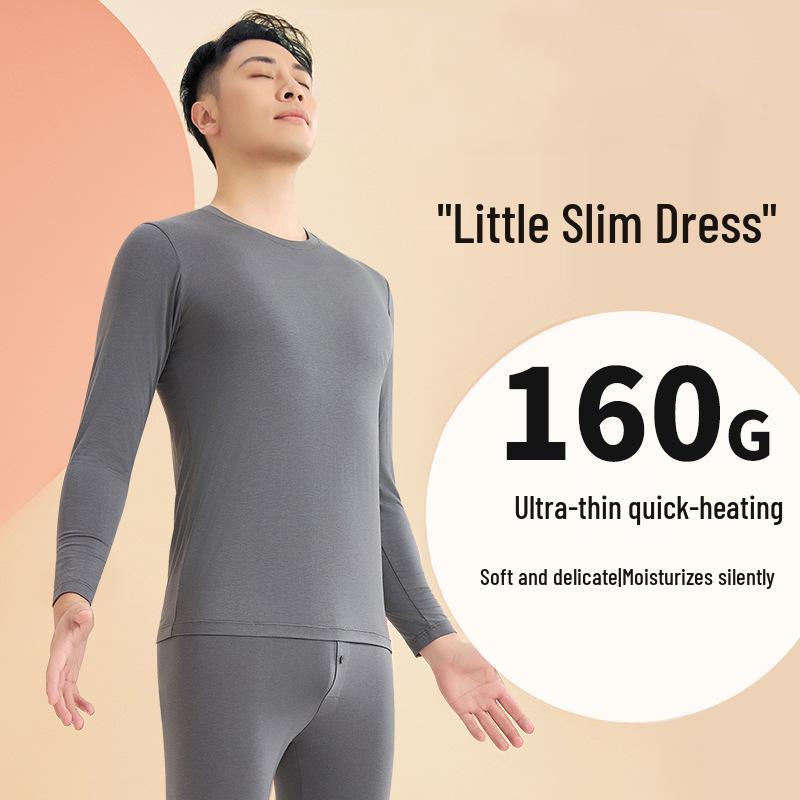 Męski Młodzieżowy Zestaw Bielizny Termicznej z Lyocellu z Okrągłym Dekoltem, Bez Podszewki, Cienki, Jesień/Zima