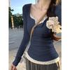 Elegancka koronkowa dwuczęściowa koszulka z długim rękawem i dopasowanym krojem dla kobiet – francuski styl wiosenno-jesienny
