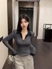 Hong Kong Style Women's V-Neck Polo Collar Knit Sweater - Autumn/Winter Fashion Trend