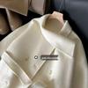 Damski płaszcz wełniany średniej długości dwustronny - 100% czysta wełna, luźny krój, pogrubiony na zimę