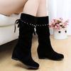 Boots Women's inner knee height increase 2025 autumn and winter new flat-bottomed boots Skinny elastic cloth boots Fleece boots