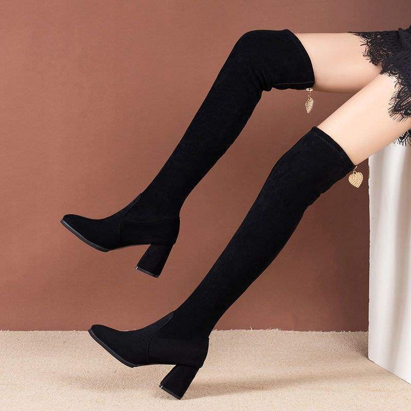 Kozaki na wysokim obcasie damskie 2025 jesień i zima nowe kozaki do kolana polar elastyczne kozaki wysokie kozaki wysokie smukłe długie kozaki
