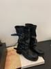 Thick-soled washed leather trousers Martin boots women's 2025 new belt buckle medium tube stack boots retro western cowboy boots
