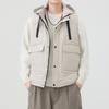 Męski kardigan bez rękawów zapinany na zamek i guziki, w jednolitym kolorze, z kapturem, modny, casualowy, luźny, kurtka, top