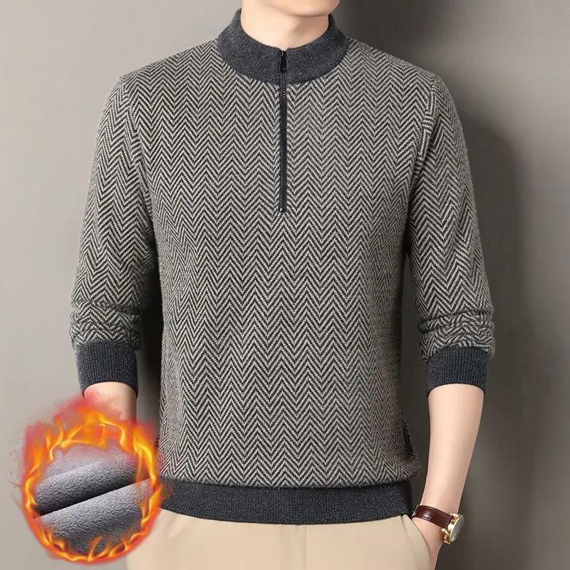 New Autumn Winter Men's Velvet Sweater Ferret Knitted Middle-aged Elderly Thickened Zipper Warm Men's Clothing