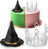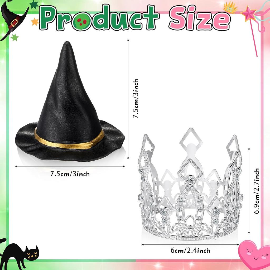 Dekoracja Tortu na Imprezę o Tematyce Wiedźm Srebrna Korona Czarny Kapelusz Wiedźmy Topper na Tort Akcesoria na Imprezę Urodzinową Księżniczki o Tematyce Filmowej