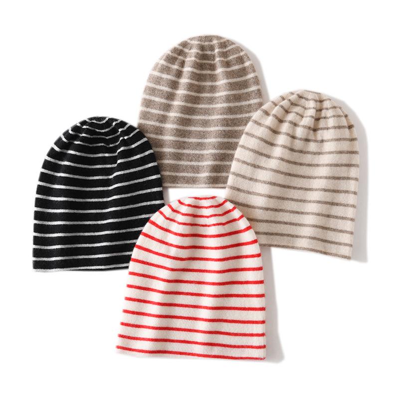 Soft Cashmere Hat Autumn and Winter New Style Unisex Casual Ear Protection Striped Color Blocked Fashionable Knitted Hat