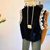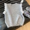 Womens Vintage Lace Trim Sleeveless Knit Vest Korean Style Loose Fit Layering Top
