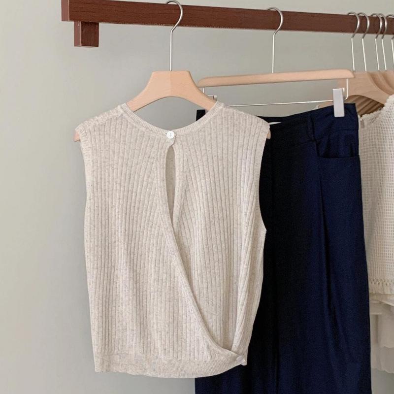 Women's French Sleeveless Knit Camisole - Open-Back Linen Tank Top for Summer