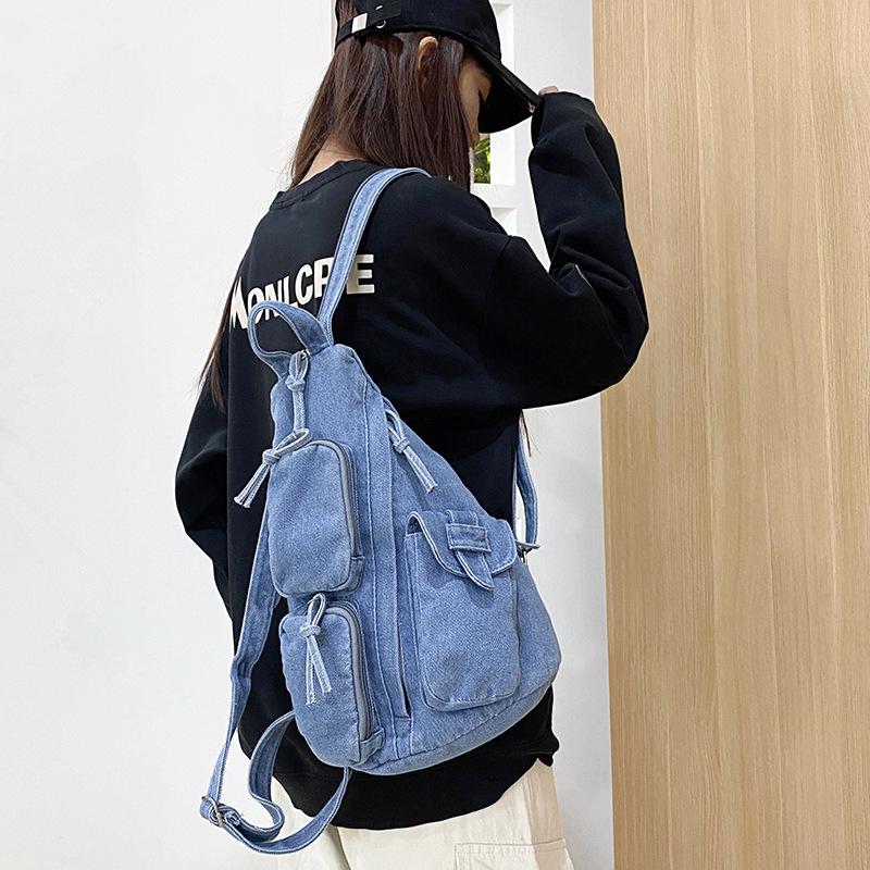 Damski Mini Plecak Crossbody z Denimu i Płótna - Lekki, Casualowy i Idealny na Dojazdy lub Podróże