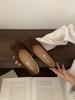 Korean retro niche flat-soled single shoes women's 2025 new light-mouth leopard print grandma shoes suede beanie shoes ballet shoes