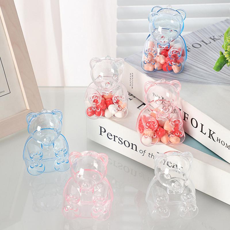 5pcs Transparent Bear Candy Box Plastic Wedding Gift Pink/Blue Chocolate Boxes Baby Christmas Candy Storage Party Supply