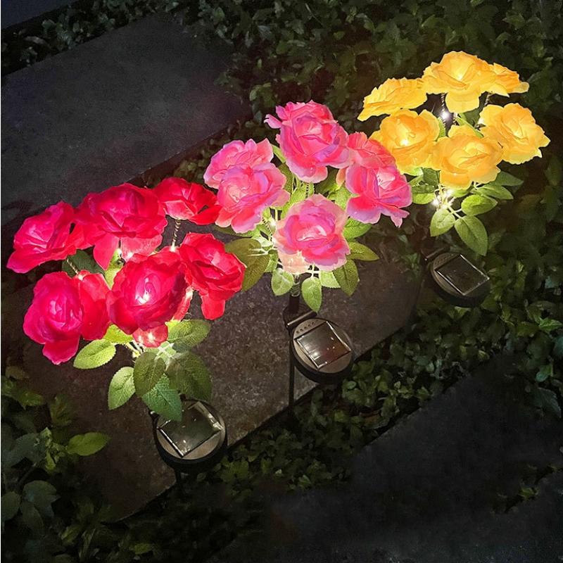 7-Head Solar-Powered LED Rose Lights Flower Garden Decor Outdoor Pathways Landscaping Light Lawn Decorative Atmosphere Lights