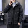 Stay warm and stylish this winter with this men's hooded winter down jacket. Crafted with a sleek corduroy exterior and insulated with premium duck down, this jacket offers an exceptional blend of warmth and lightweight comfort. The thin yet effective insulation ensures you remain cozy without the bulk. Featuring a corduroy lining for added texture and design, this jacket is perfect for the modern man looking to combine fashion with functionality during the colder months.