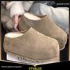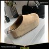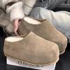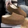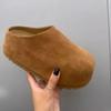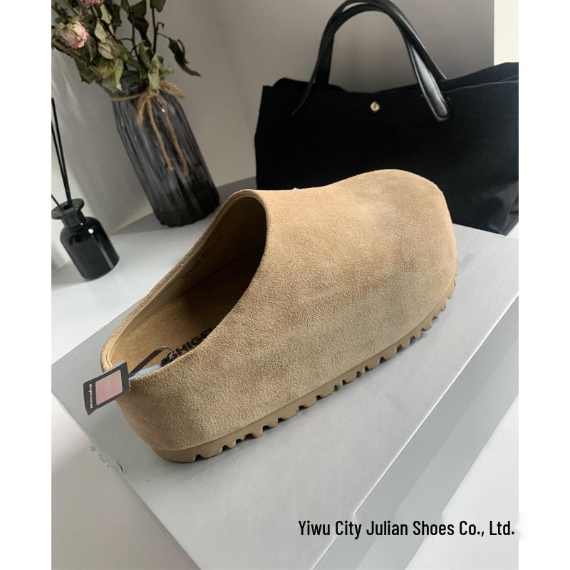 2025 Nowe Damskie Małe Zamknięte Pantofle ze Skóry Nubukowej Podwyższające Obcas Wsuwane do Noszenia na Zewnątrz