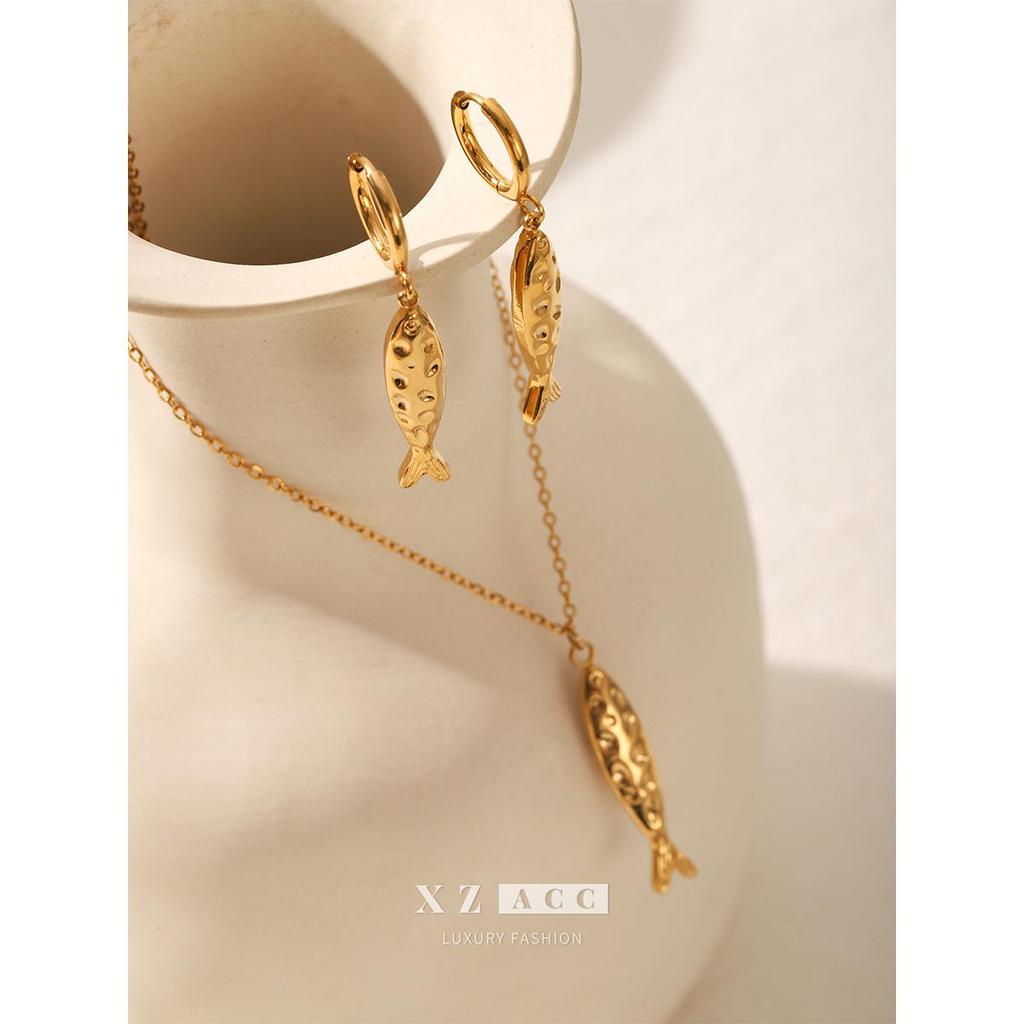 Europejskie i Amerykańskie Kolczyki ze Stali Nierdzewnej Koi - Lekki Luksus Tytanowy Wisiorek Akcesoria