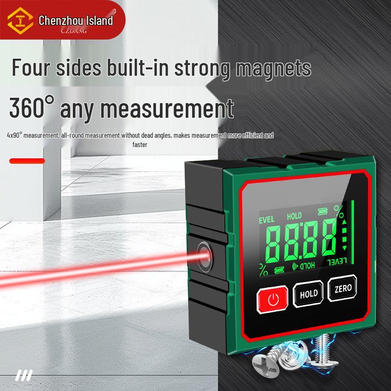 4-Side Magnetic Digital Inclinometer with Laser and Electronic Angle Ruler