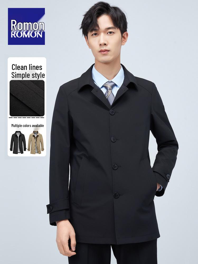 Romon Men's Mid-Length Cadre Style Trench Coat - Slim-Fit Autumn Jacket 2025 Trend