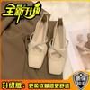 Single shoes women's flat bottom versatile pearl sweet shallow mouth spring new lace ballet beanie shoes lady style grandma shoes