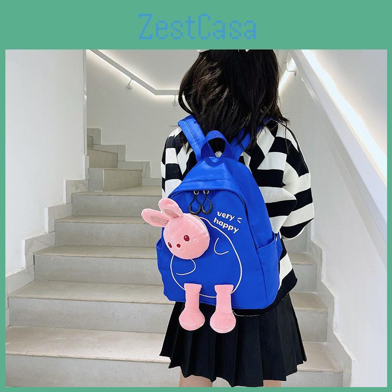 Cartoon Rabbit Plush Backpack Nylon Texture High Capacity Suitable For Daily Use