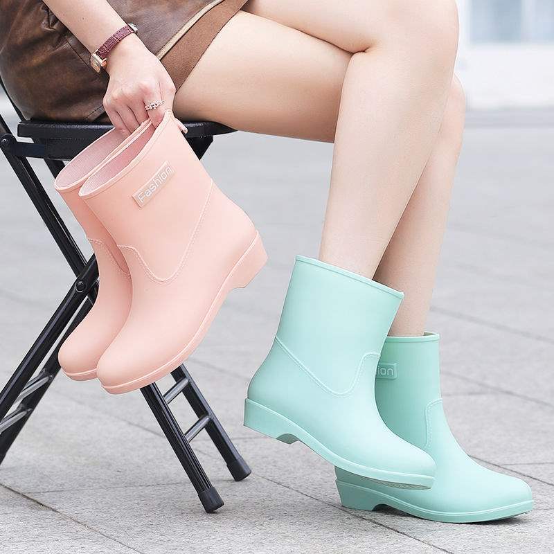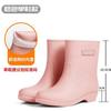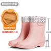 New medium tube rain shoes women's waterproof and wear-resistant four-season women's rain boots warm and velvet flat rain shoes kitchen shoes glue