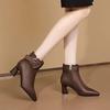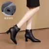 Krótkie buty damskie na grubym obcasie, szpiczaste, jesienno-zimowe, nowe, modne buty na wysokim obcasie, welurowe, stylowe buty damskie