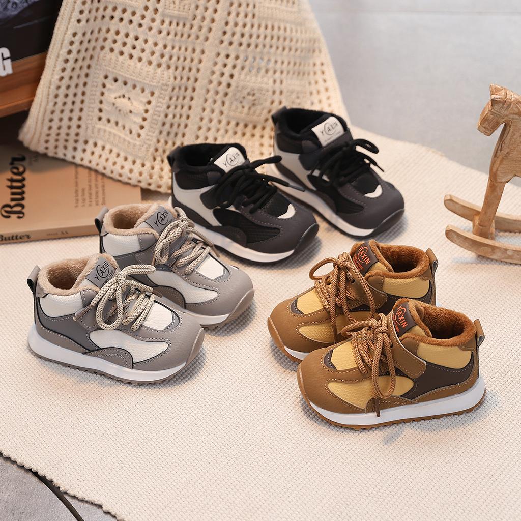 Zimowe Modne Bawełniane Buty Dziecięce dla Chłopców Miękkosolowe Wszechstronne Buty Codzienne Podwójna Bawełna Podszyte Polarem Ciepłe Buty do Biegania