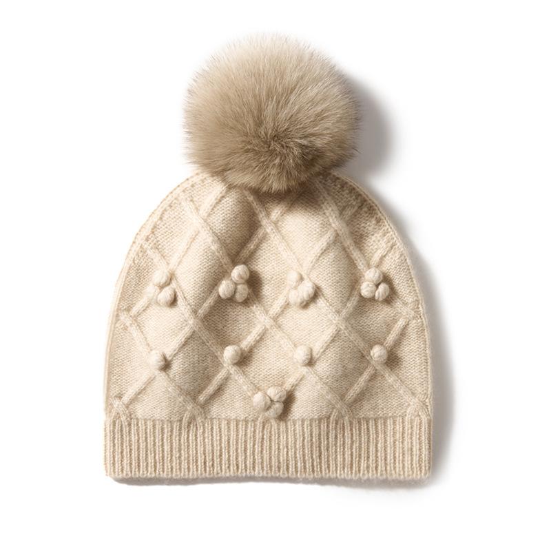 Cashmere Autumn and Winter New Women's Rhombus Beanie Outdoor Warm Rhombus Fur Ball Ear Protection Knitted Casual Hat