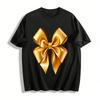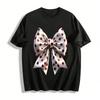 Women's Slight Stretch Classic T-Shirt Color Block Text with Polka Dot Bow Tee