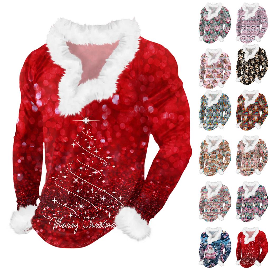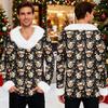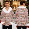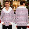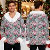 Męska bluza z kapturem z nadrukiem świątecznym, podszyta polarem | Sweter imprezowy z imitacją obszycia i kieszenią | Duży rozmiar, luźny krój, świąteczny pulower