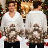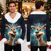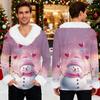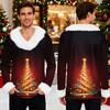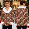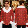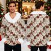 Męska bluza z kapturem z nadrukiem świątecznym, podszyta polarem | Sweter imprezowy z imitacją obszycia i kieszenią | Duży rozmiar, luźny krój, świąteczny pulower